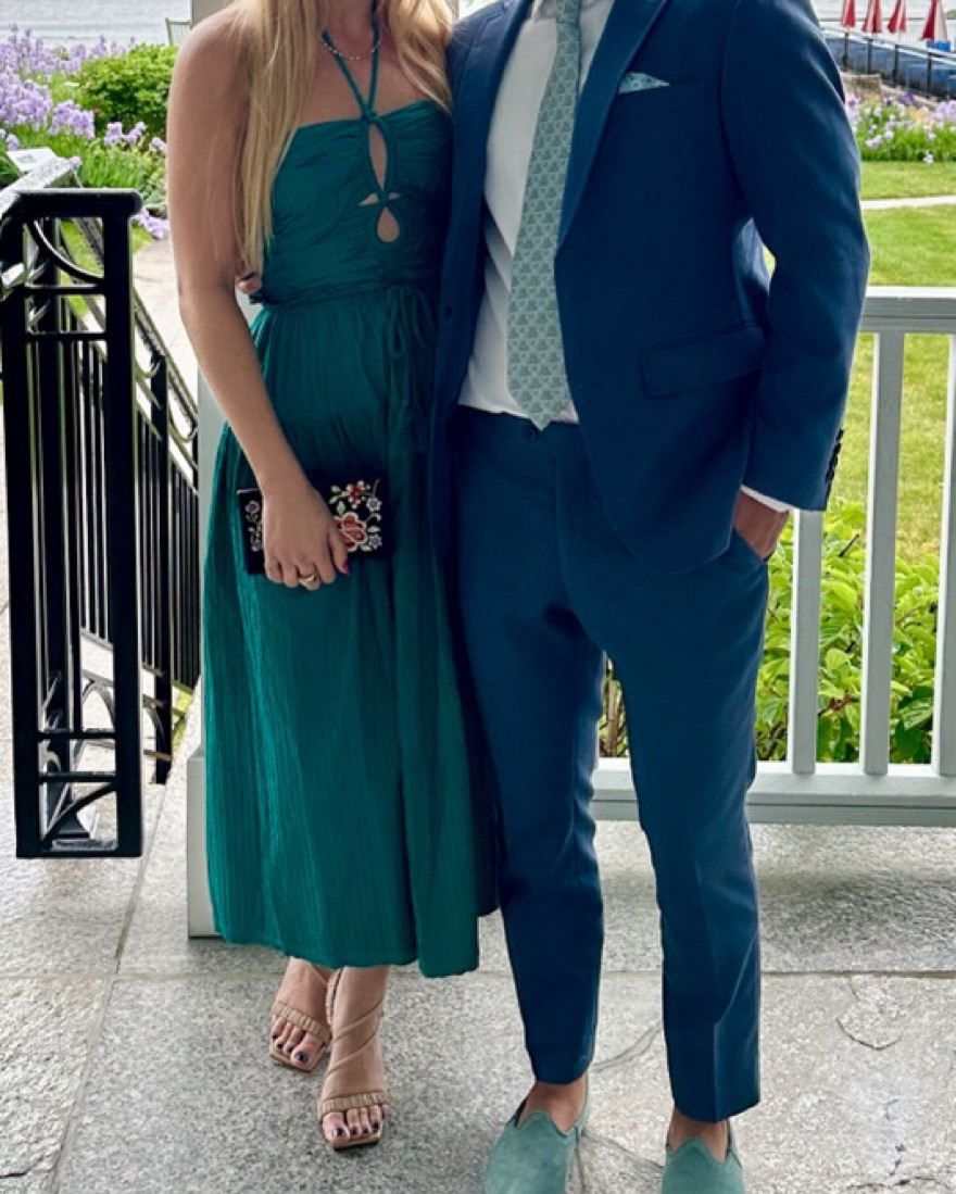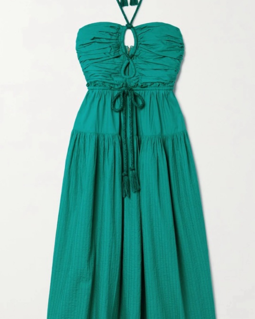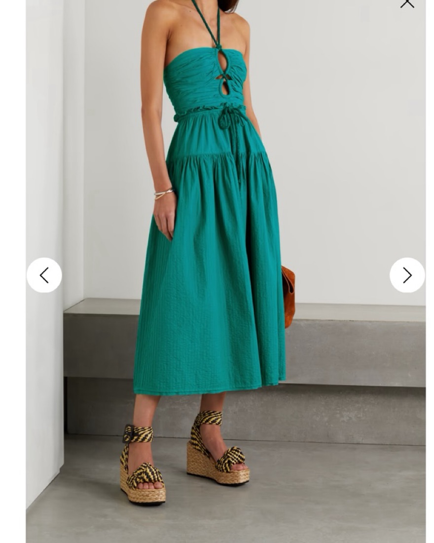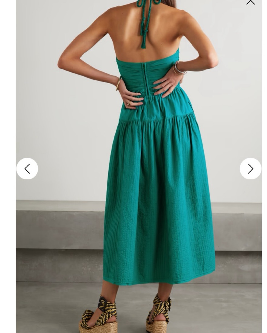 Halter neckline Double keyhole opening in smocked bodice with zip back Materials & Care: 100% cotton