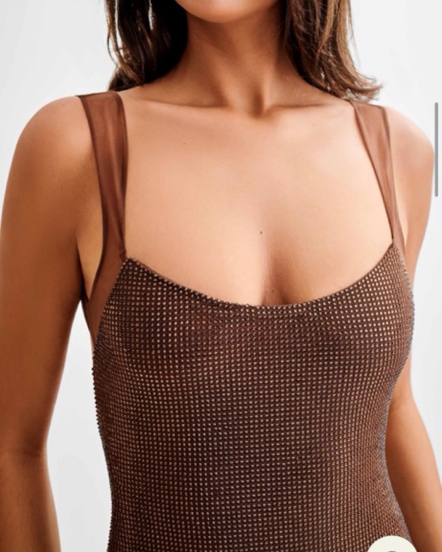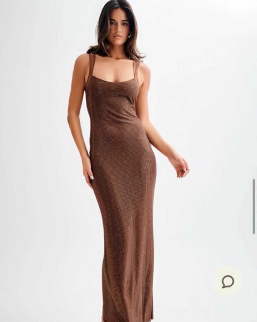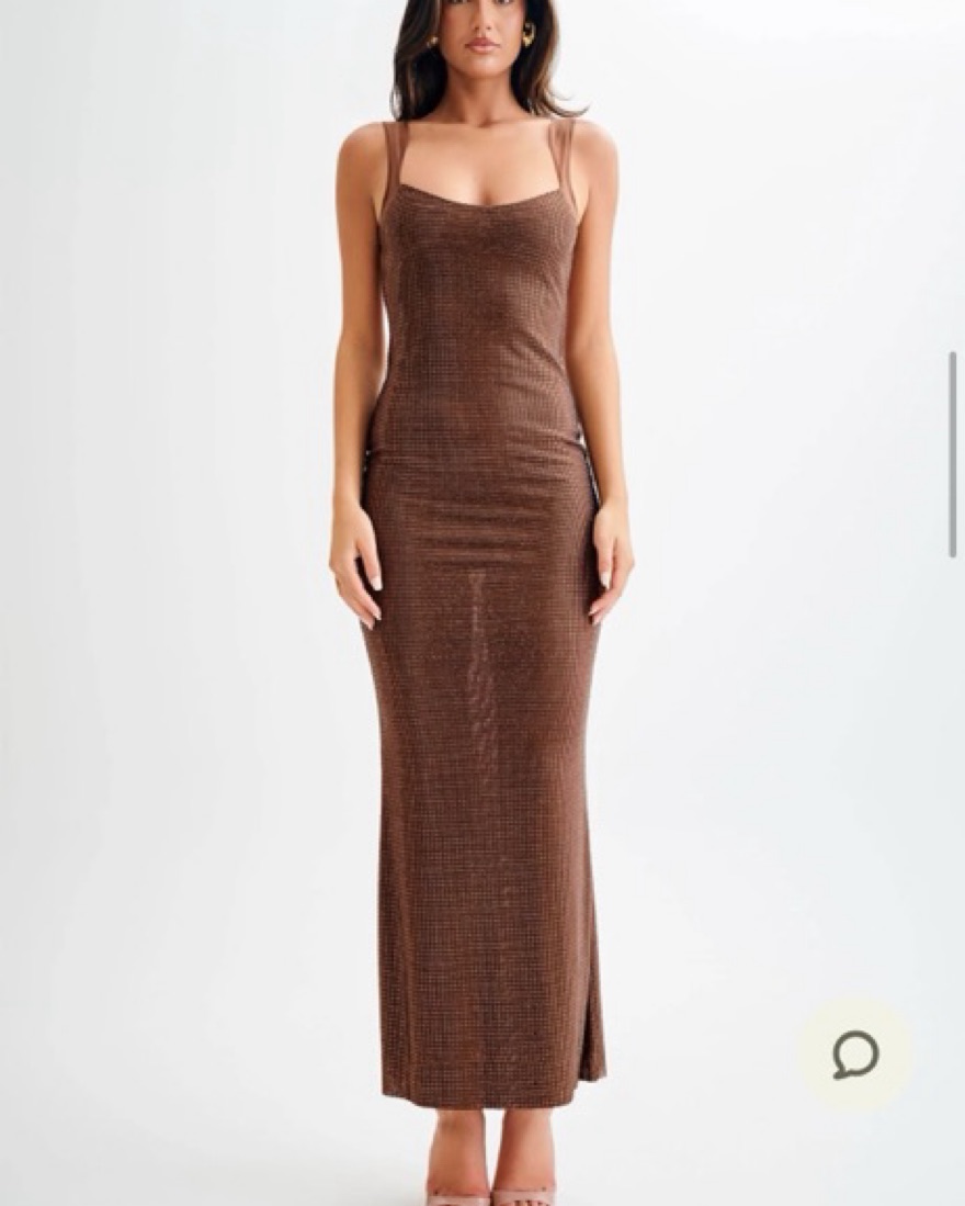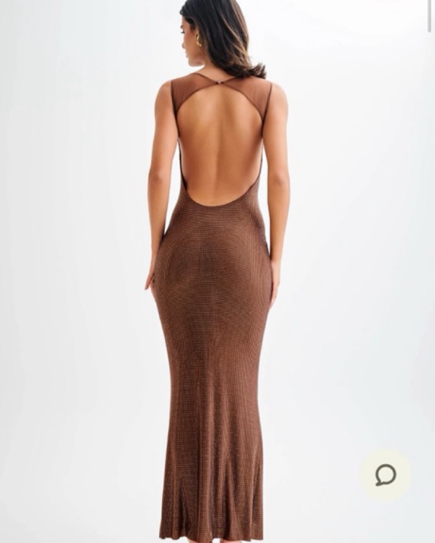 Hot Fix Maxi Dress With Mesh Back - Chocolate