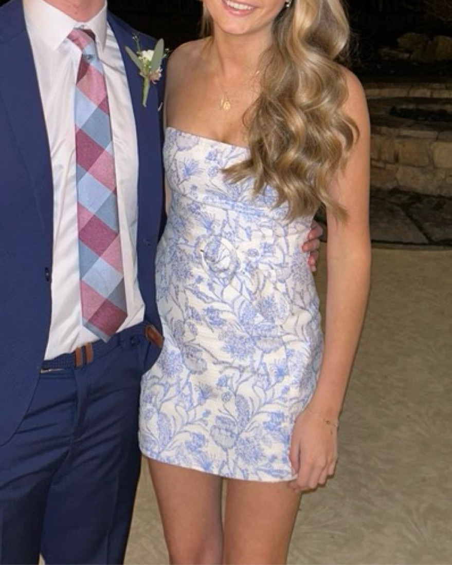 In toile brocade! Cutest thing ever, wore this to a dance.