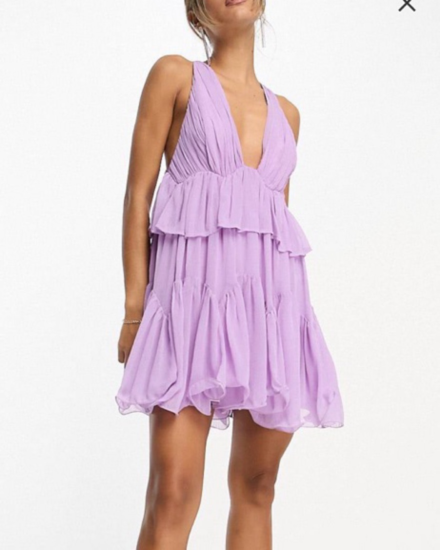 ASOS Plunge Pleated Purple Mini Dress
