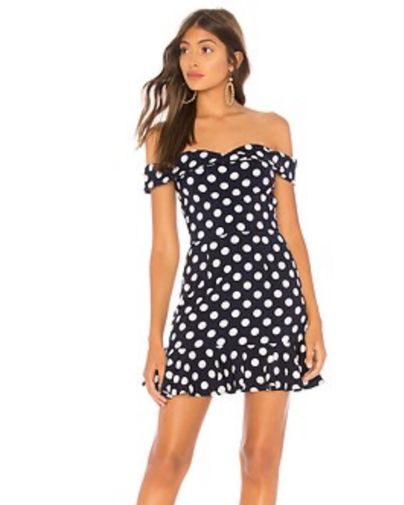 Revolve Navy Polka Dot Dress