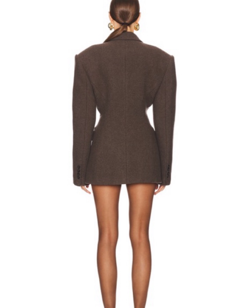 Helsa Italian wool blazer from Revolve! This is the new run of these structured blazer/blazer dresses. This one fits true to size XS but I also have the original run listed in my closet as well! That one is technically an XS but fits like a S. If you’re taller, the other listing would be best!