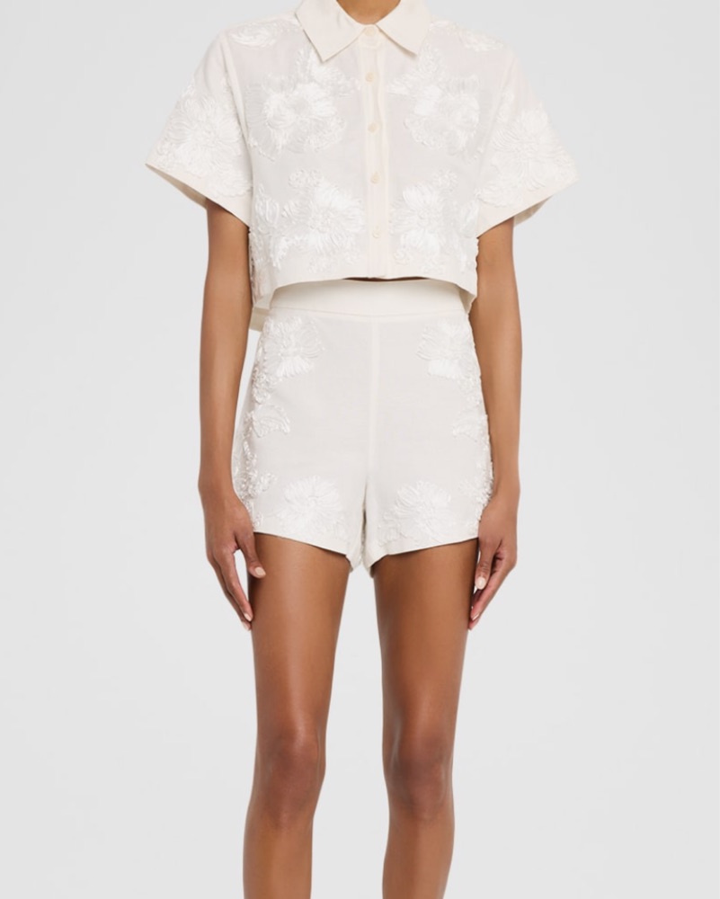 SIMKHAI Sammie Floral Shorts - white floral embroidered design