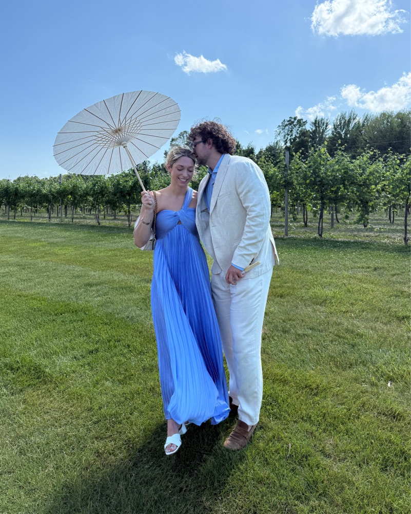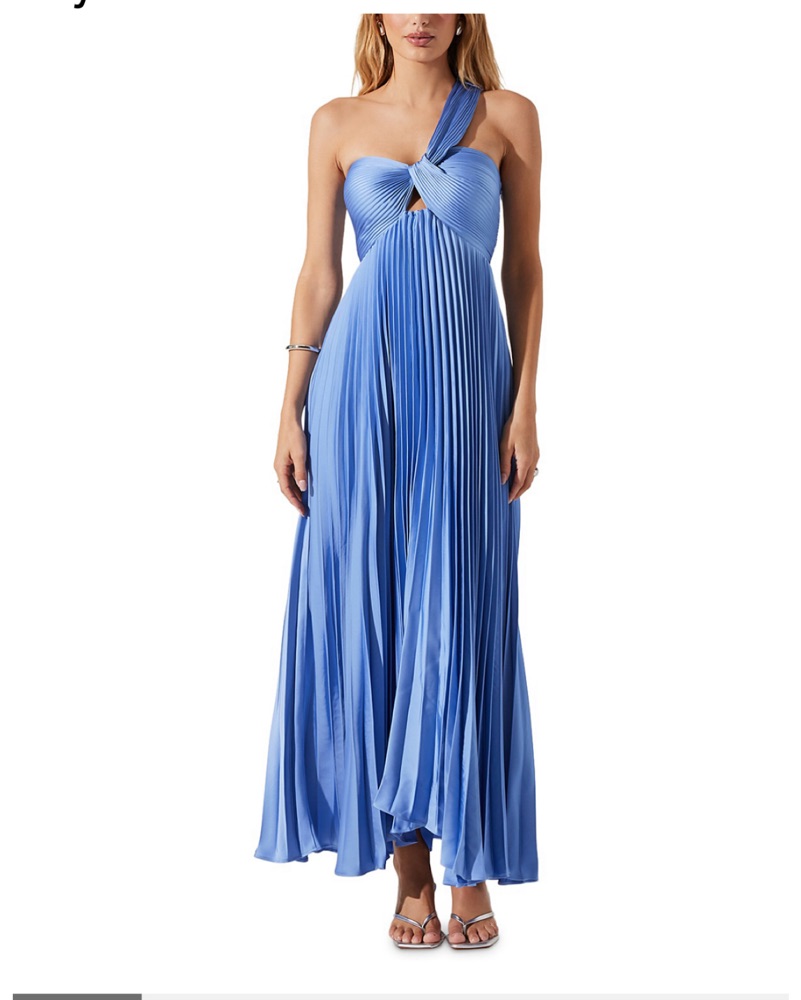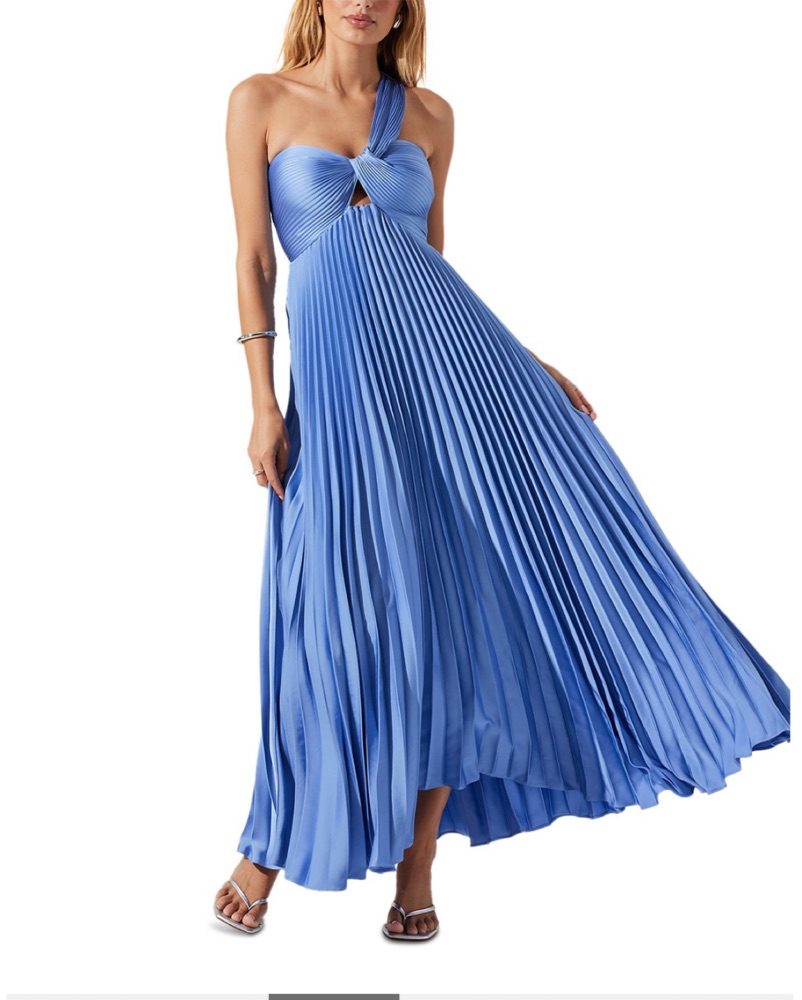 Astr the Label. Periwinkle blue. So many compliments wearing this dress. One shoulder, twisted neck with keyhole… Flattering, soft and comfortable! Idk what it is, but something about this blue is just so eye catching! Perfect for formal weddings at a vineyard, beach, garden party or vacation!