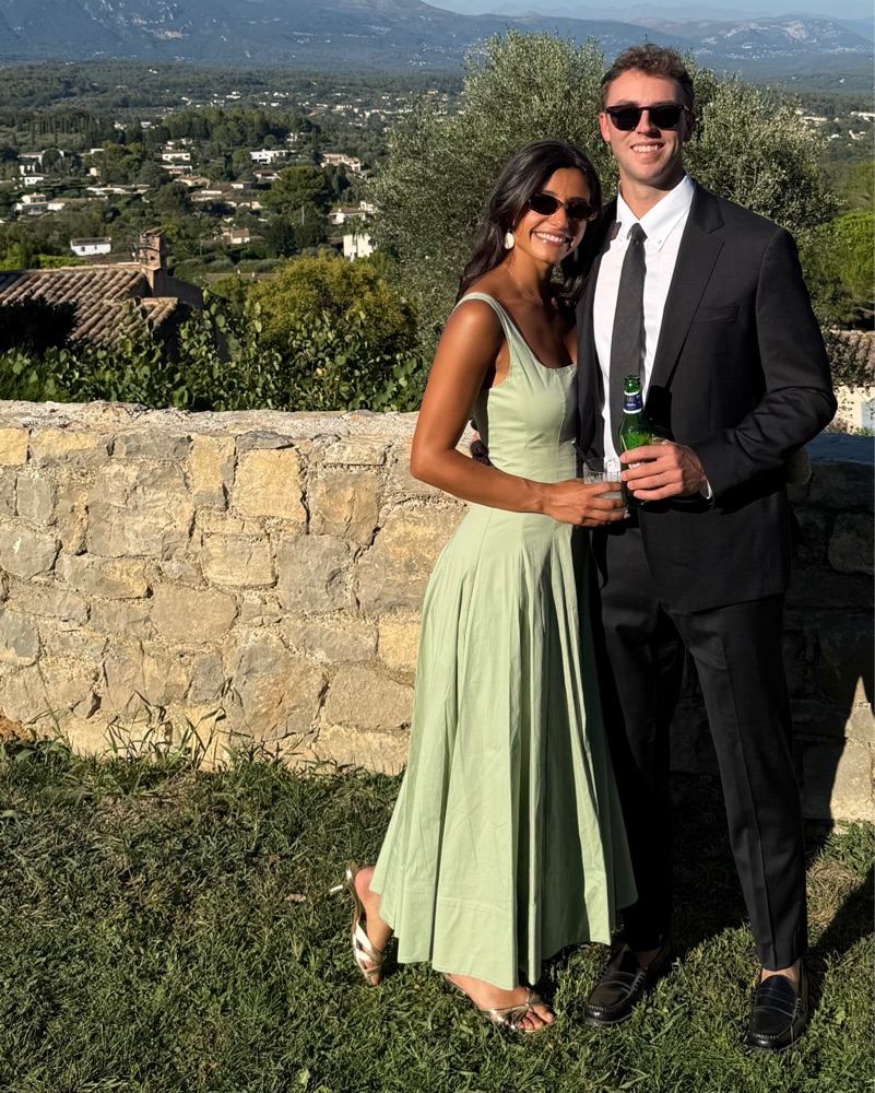This sage green midi dress is perfect for a formal event or wedding. The flowy, A-line silhouette is both chic and comfortable.