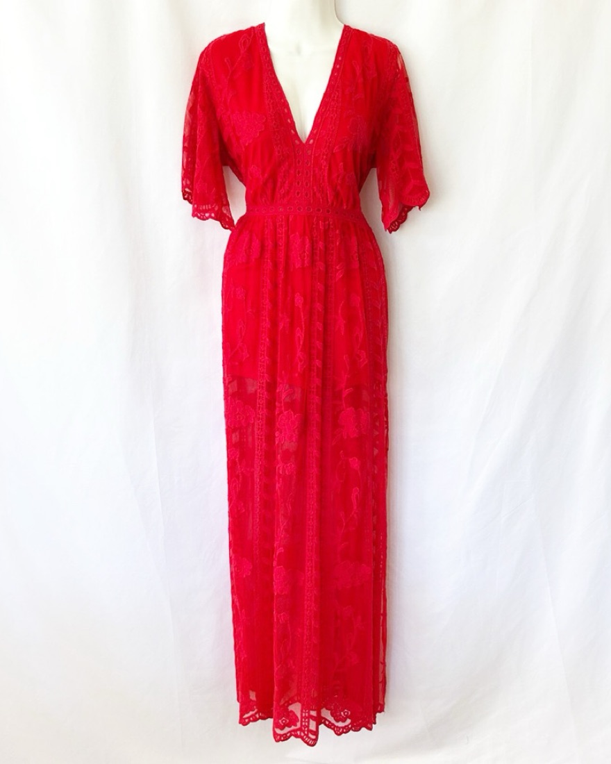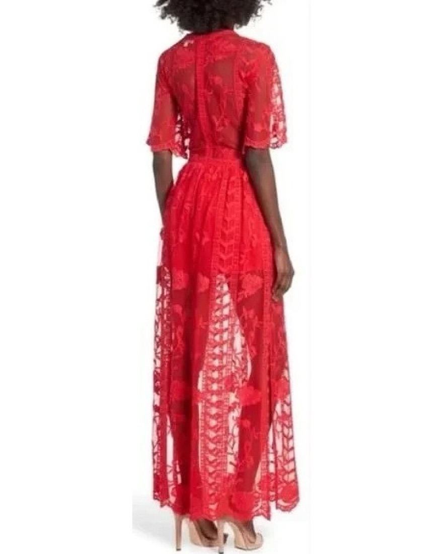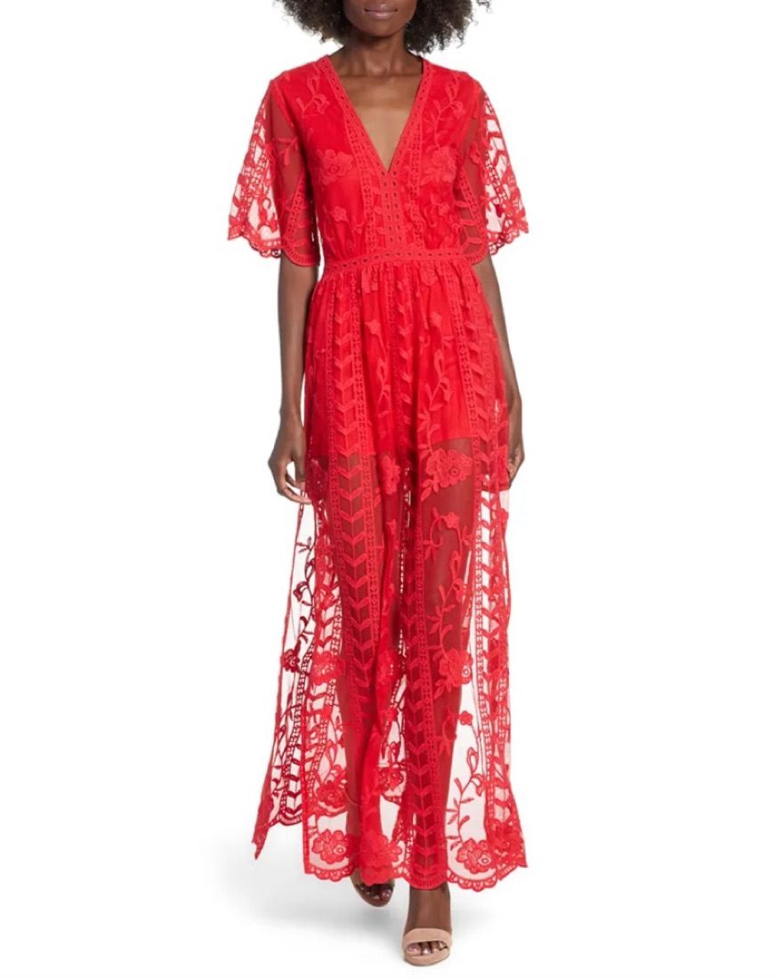 Socialite Red Lace Maxi Romper Dress by socialite - Pickle