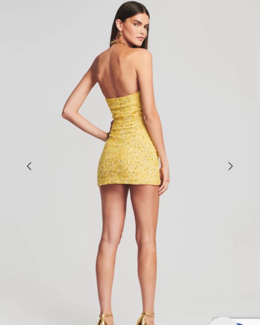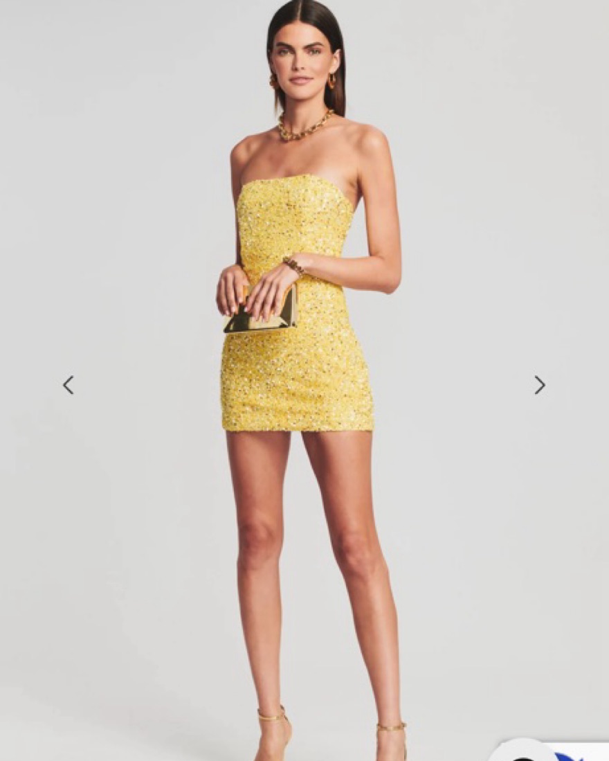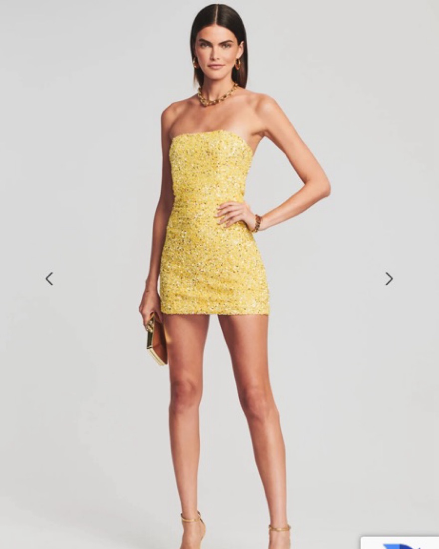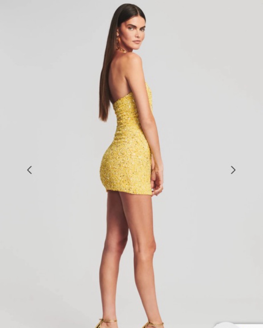While understated in design, the Heather Dress shines bright in its hand-stitched sequin fabrication. The steadfast strapless silhouette features supportive boning through the bodice to contour the curves of the body and an invisible side zip closure. Shown here in Yellow.