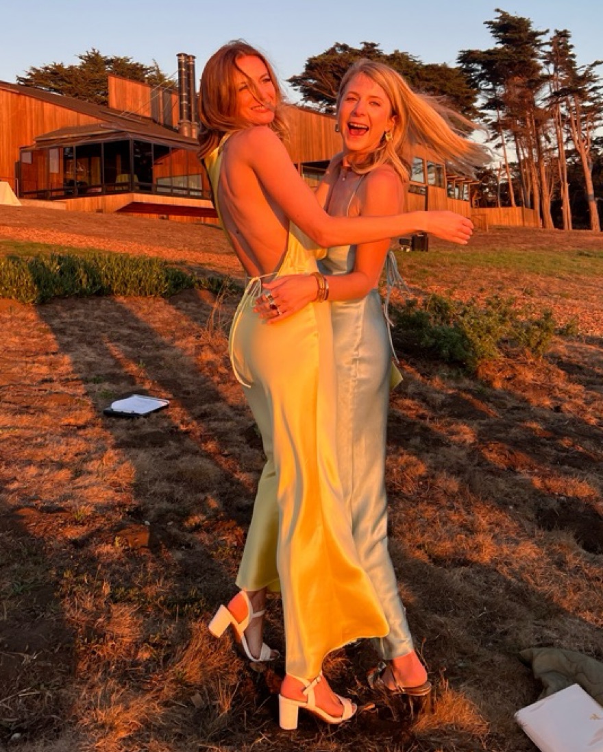 Stunning for black-tie weddings. Buttery, soft satin. Hemmed to be floor-length for 5’3 height with 2” heels. Size 2.