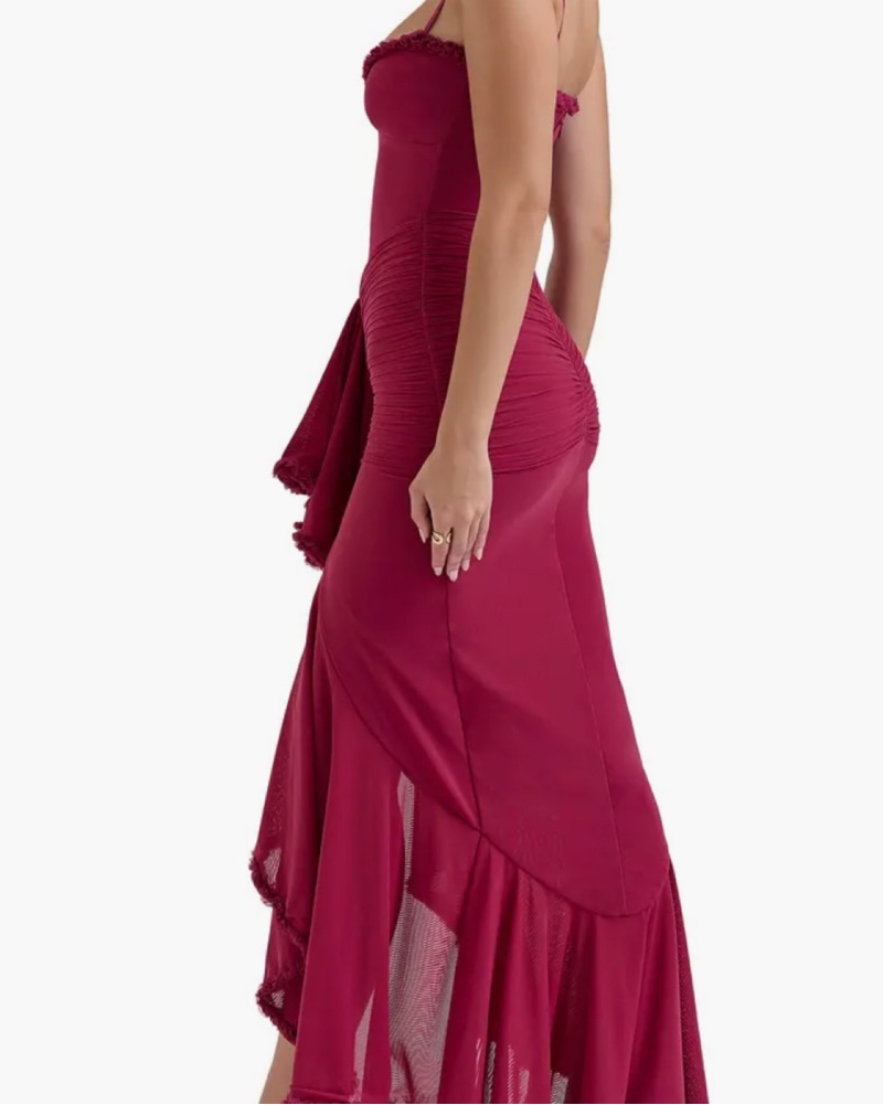 House Of CB Gabbi Wine Ruffled Gown