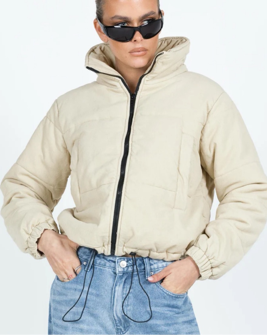 Polly Puffer Jacket Beige by Princess Polly - Pickle