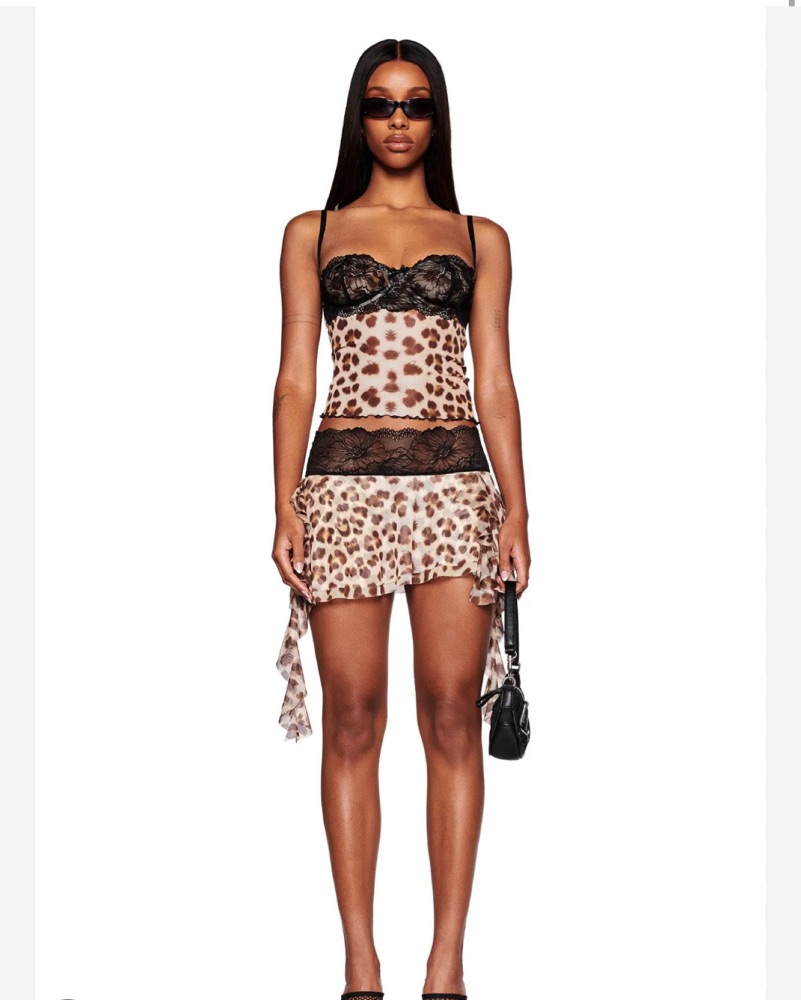 I. Am. Gia. leopard print and black lace skirt and tank top set is perfect for a night. Revolve Matching set.