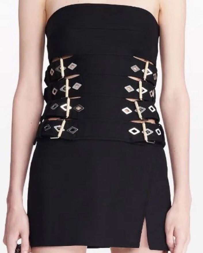 Size 8, but fits like a 4 — Gold & silver buckles // zips in back. Try on’s welcome 🖤