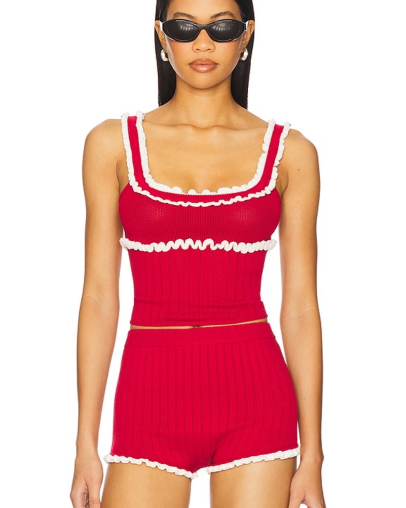 Red and white tank and shorts set