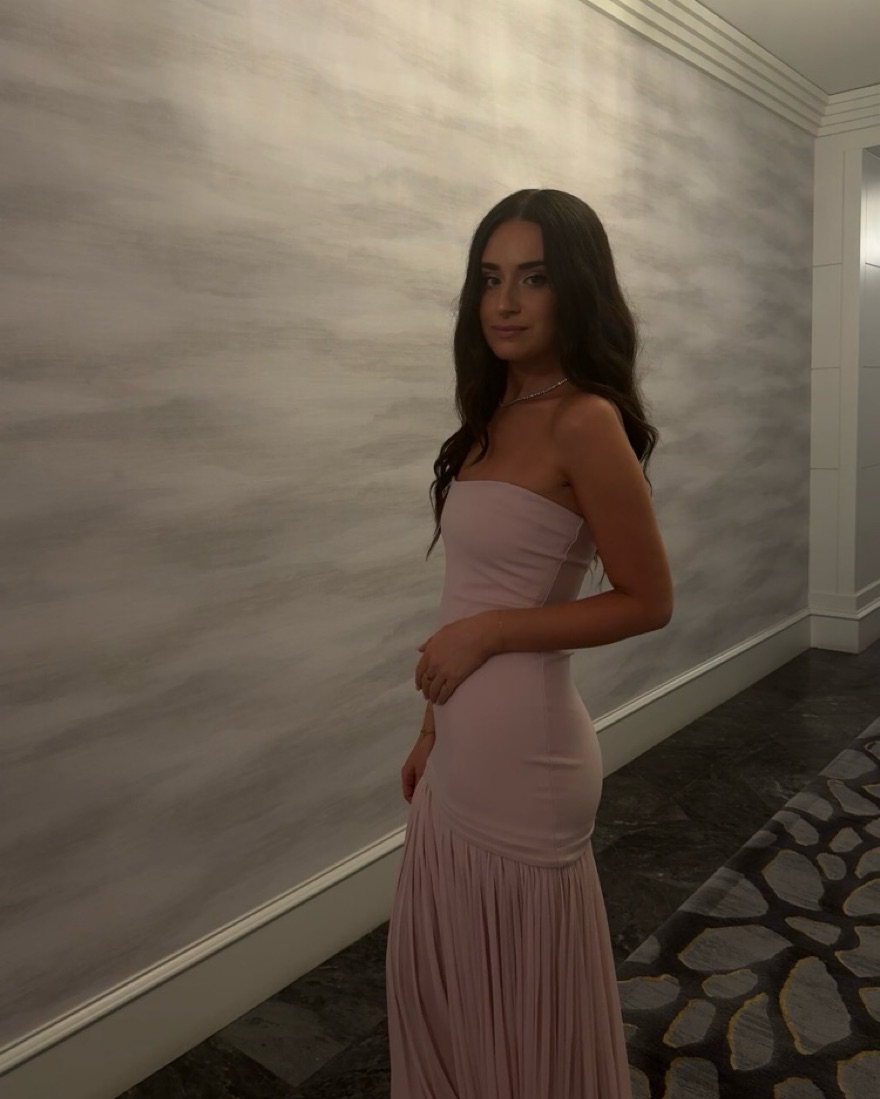 Naomi Dress by Helsa in light pink. So flattering. Perfect for bridesmaid dress. Size M. Must dry cleaners after wearing.