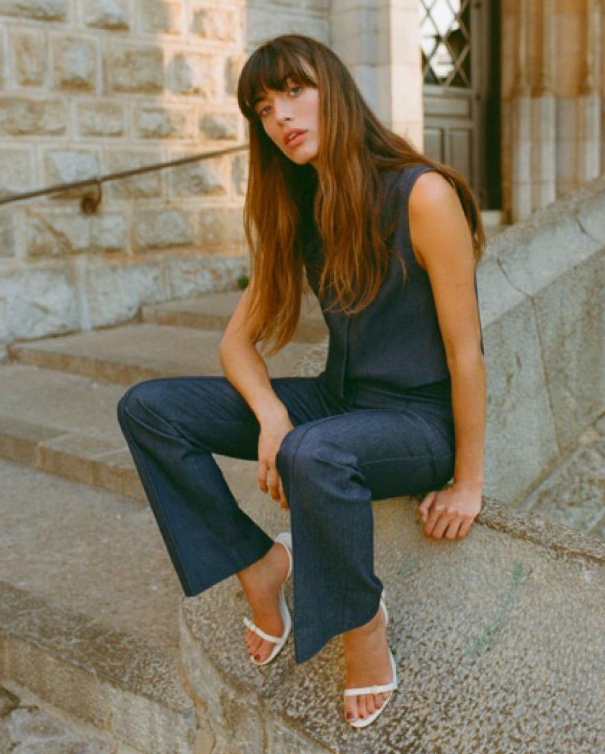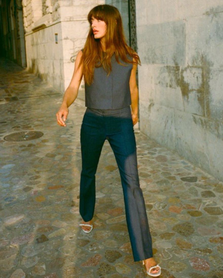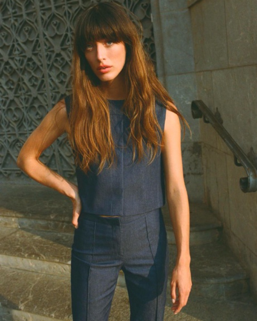 Elevate your style with this chic two piece denim set, perfect for any formal or semi-formal occasion and super flattering!! Top is slightly cropped. Top is S and bottoms are M. DM about renting pieces separately!