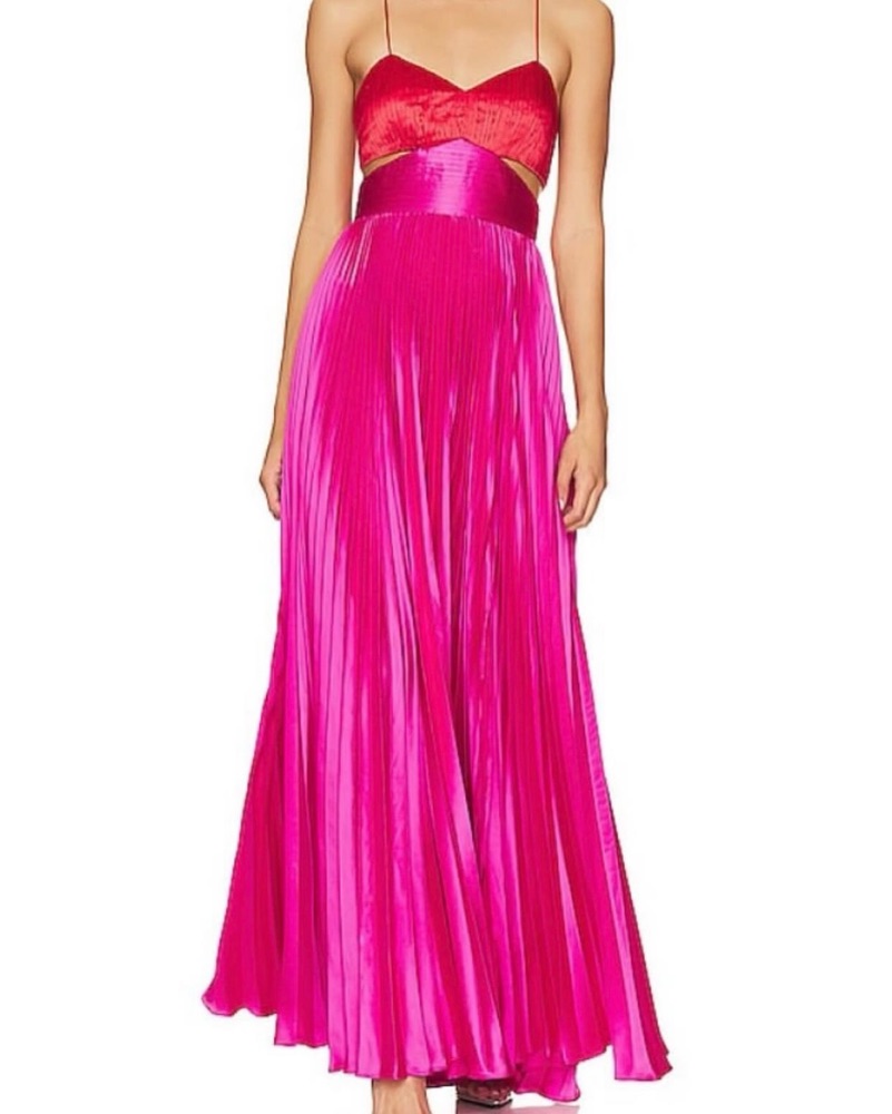 This stunning fuchsia maxi dress is perfect for a formal event or special occasion. The pleated bodice and flowing skirt create a flattering silhouette.