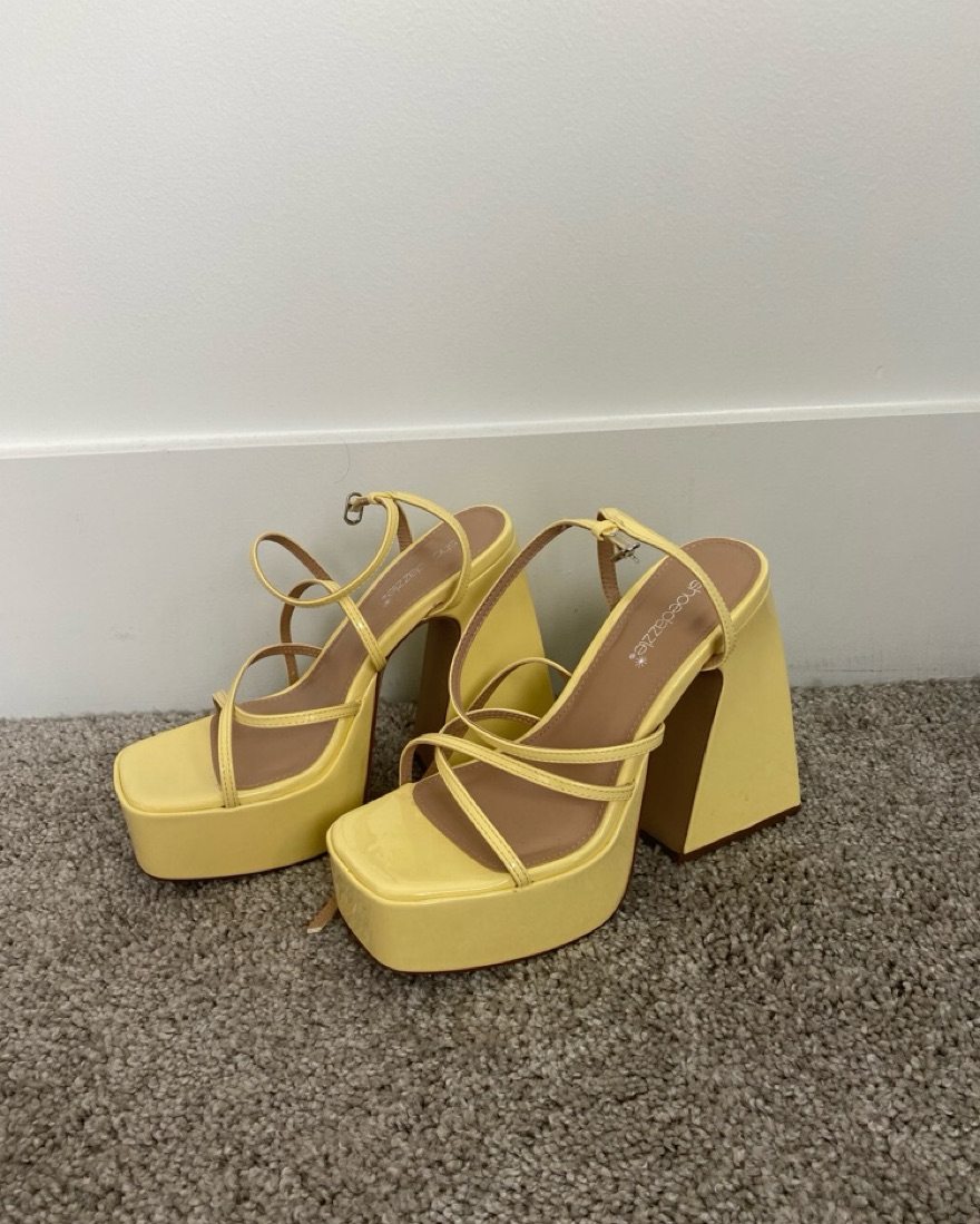 JustFab Pale Yellow Chunky Heels by JustFab - Pickle