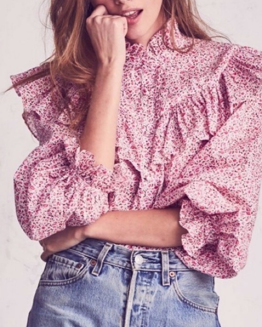 Love Shack Fancy Pink Floral Erica Top. Size XS. 100% cotton