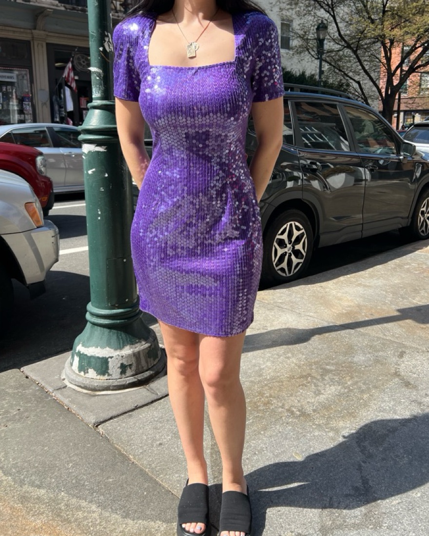 Vintage Purple Sequin Square Neck Dress by Vintage - Pickle