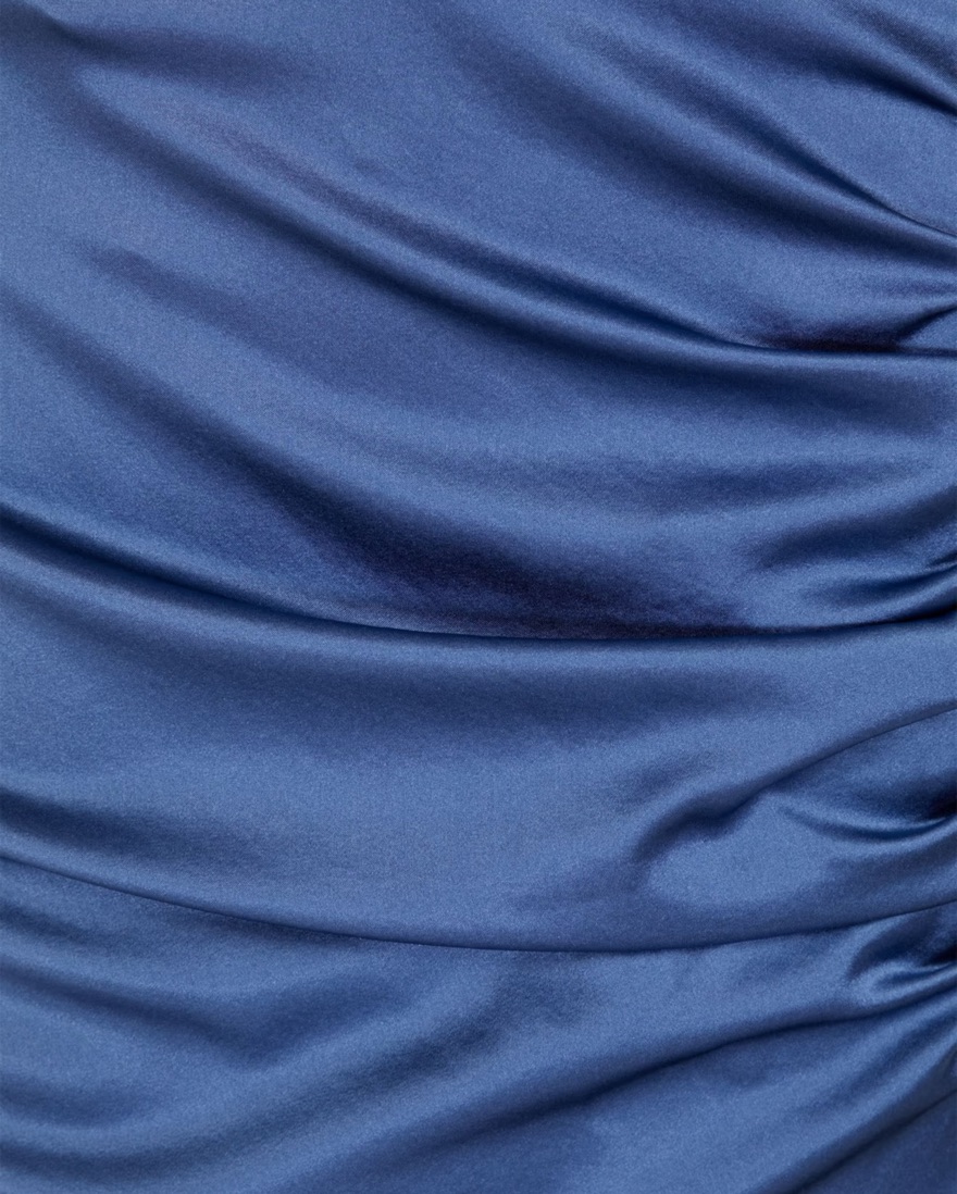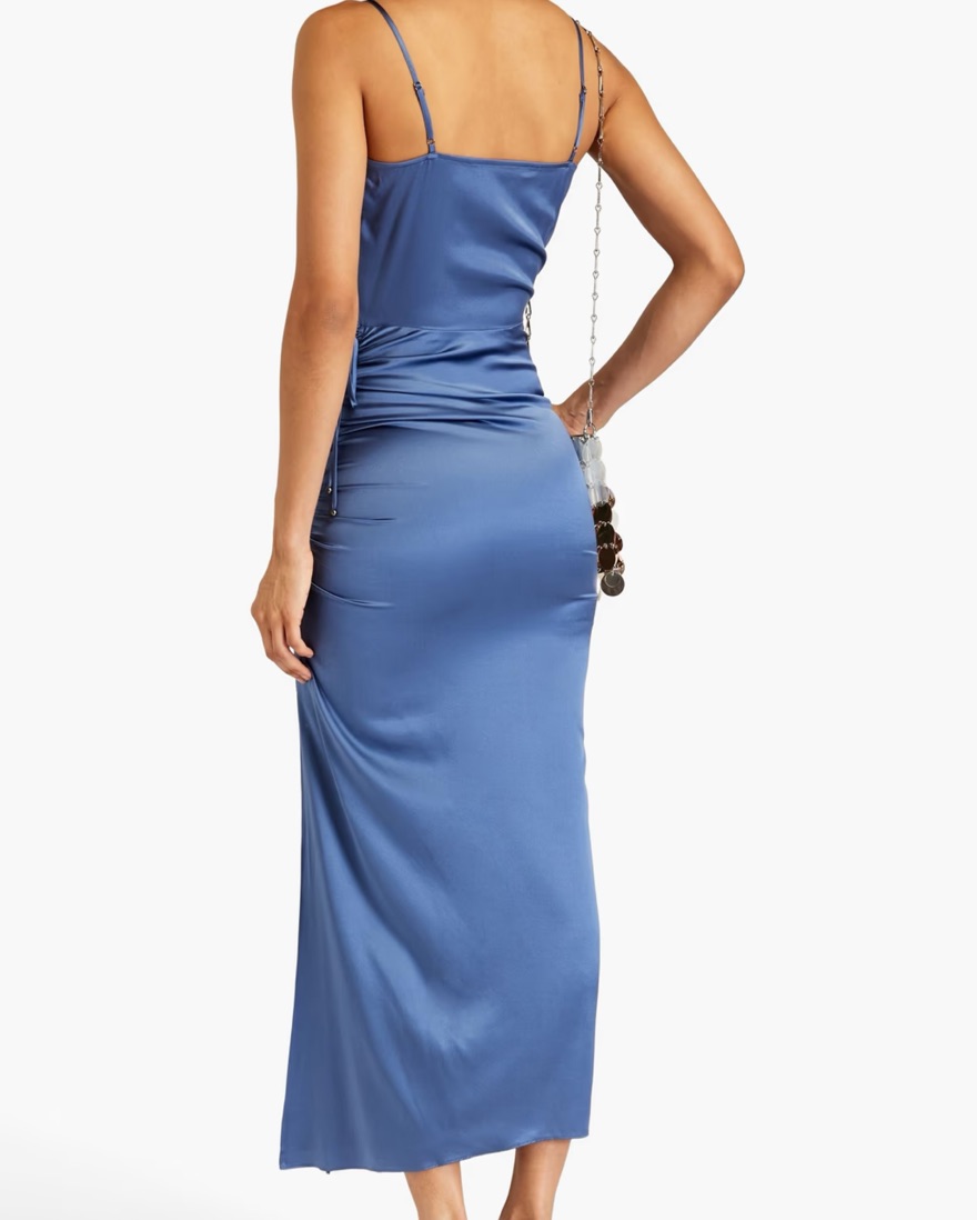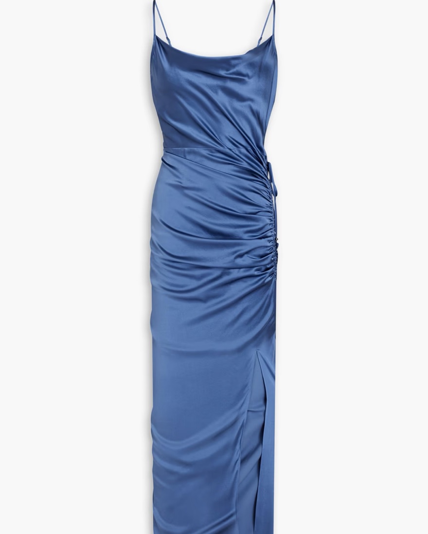 Natasha ruched silk-blend satin maxi dress in a gorgeous storm blue color!