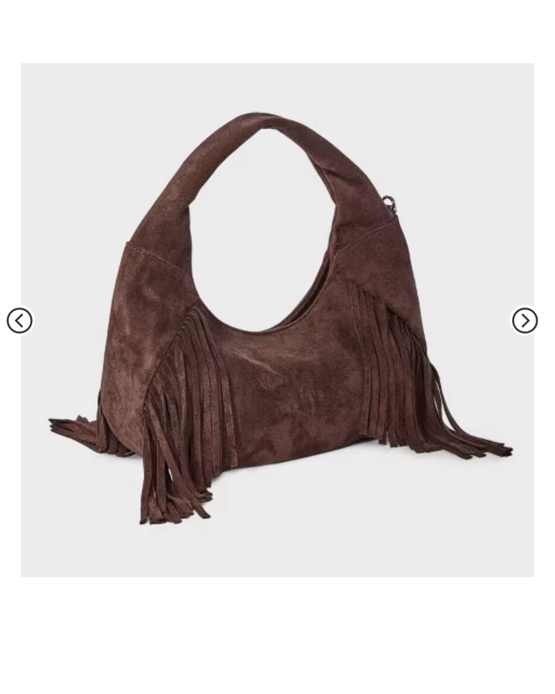This luxurious suede hobo bag is perfect for adding a boho-chic touch to any outfit. Its stylish fringe detailing and sleek design make it a versatile accessory for both casual and dressy occasions.