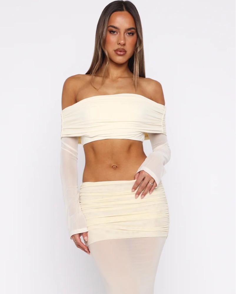 Mesh Long Sleeve Skirt Set by White Fox Boutique - Pickle