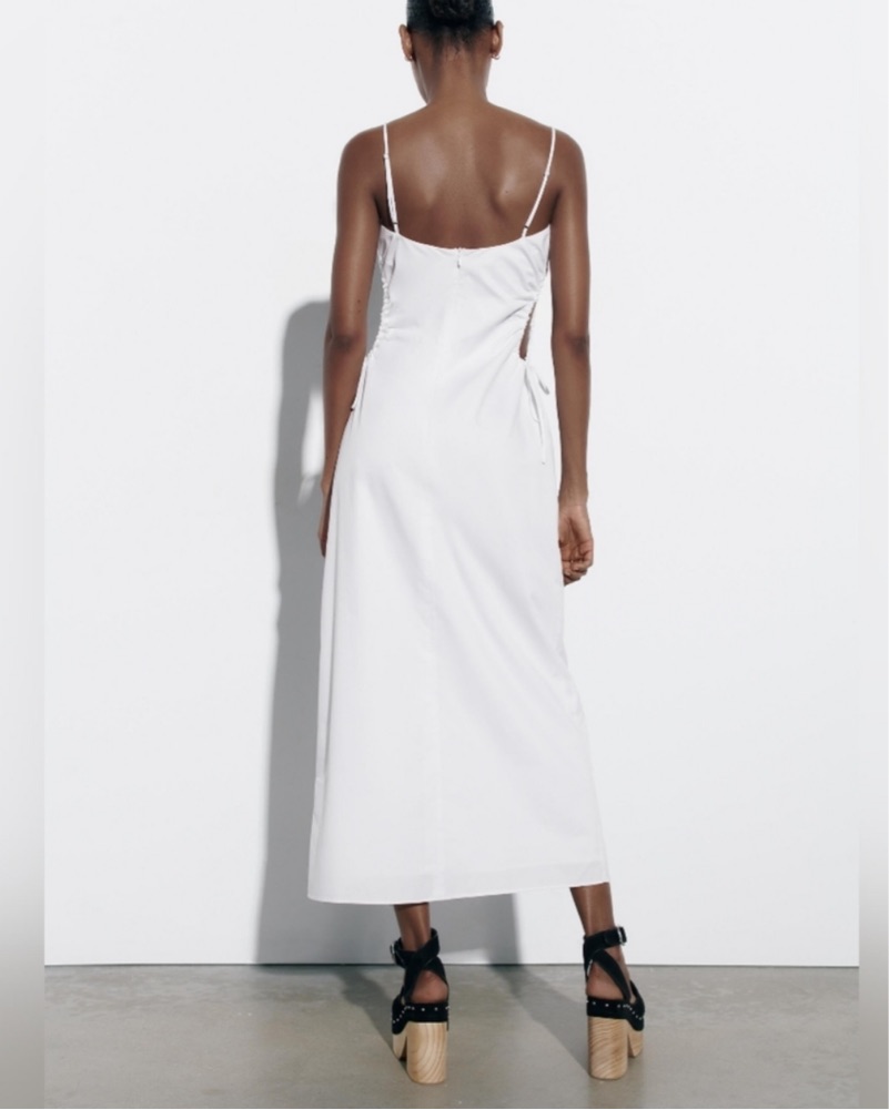 Side cut outs, fully lined white Zara dress. Perfect condition and perfect for summer. Size XS but runs small so fits like a S.