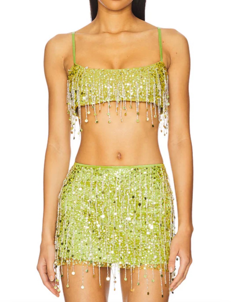 Sparkly green Yasmin set 💚 Top in size S. Skirt in size XS. Tags: asta resort, nyc, green dresses, Halloween