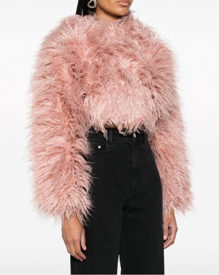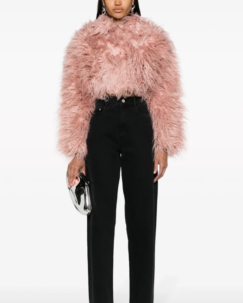 The pastel-pink faux-fur construction of this jacket showcases Cult Gaia's playful spirit. It's cut for a cropped silhouette and boasts a coordinating satin lining and concealed buttons.