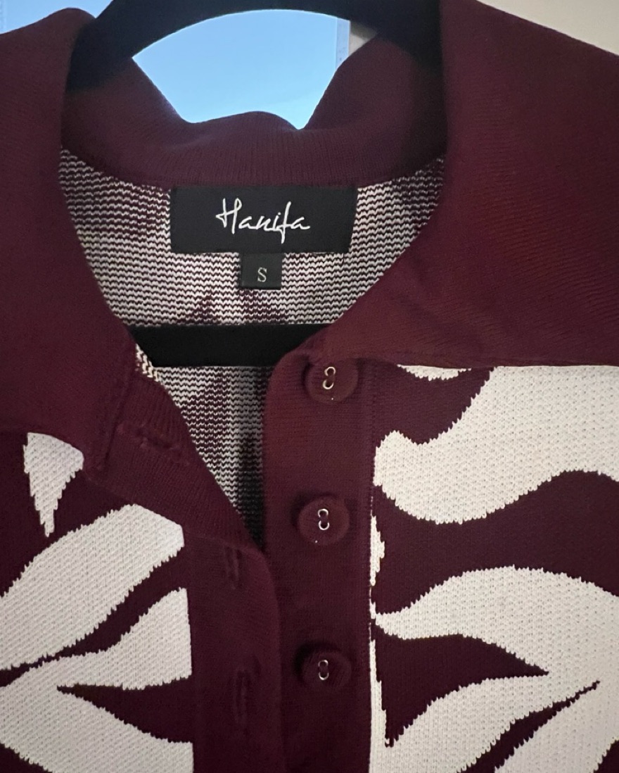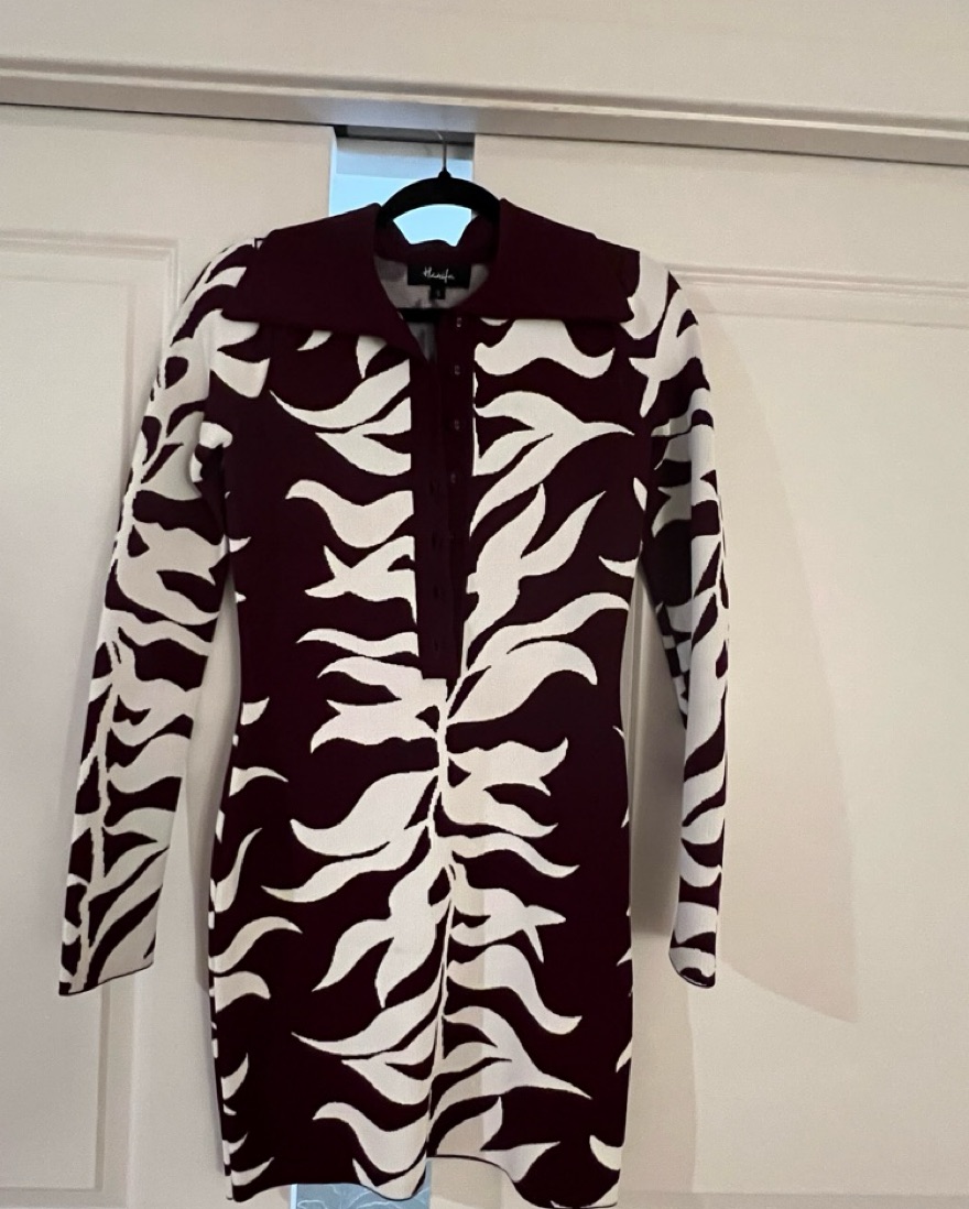 Hanifa Soraya mini dress in plum and white.