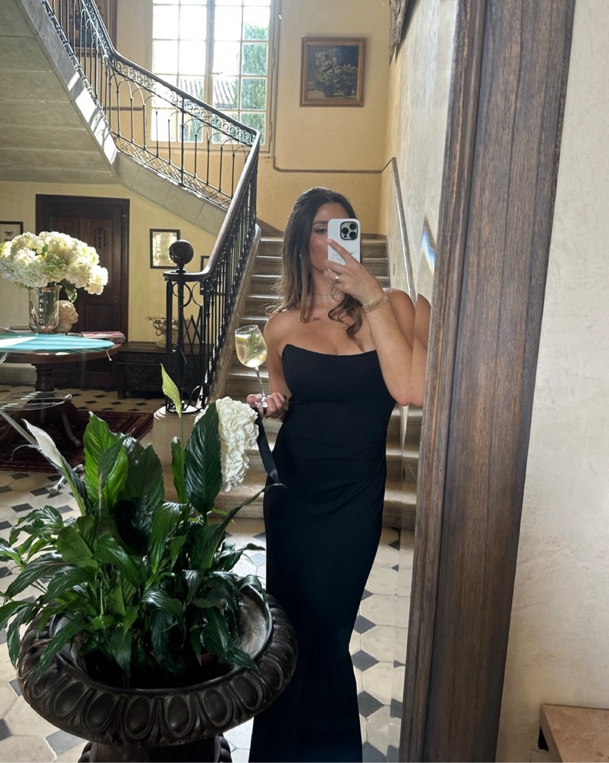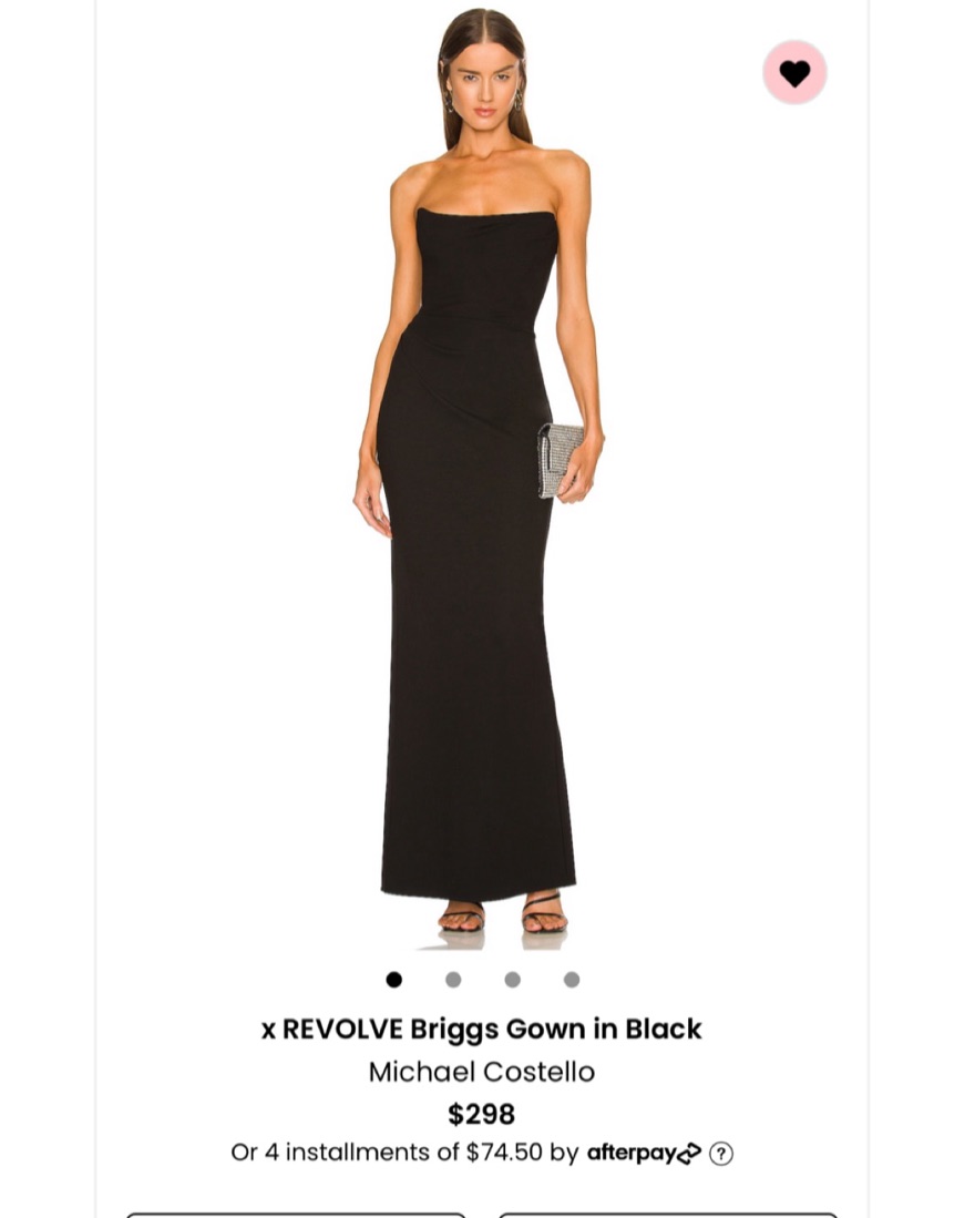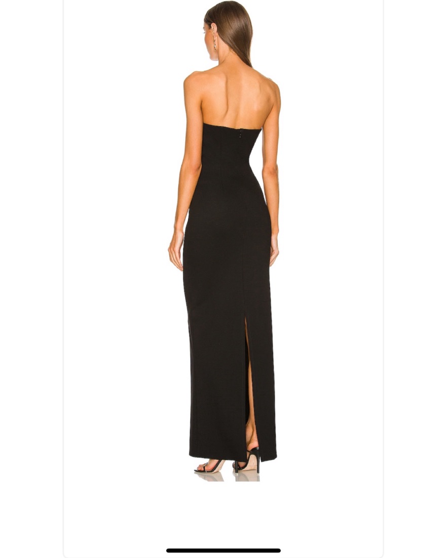 Michael Costello revolve gown in black. Hidden back zipper closure Boned bust and back vent. Very flattering