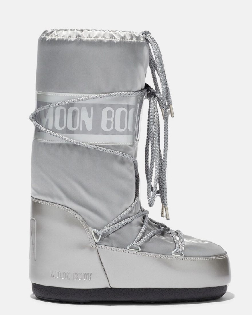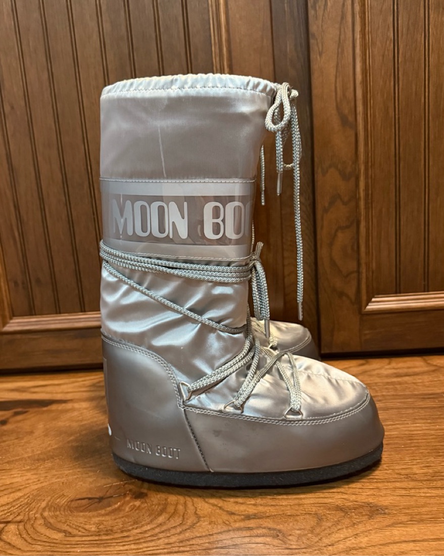 Silver moon boots! Vintage Icon Glance edition in a glossy satin silver - size 39/41 - fits a US women’s size 7-9. (I’m an 8.5)