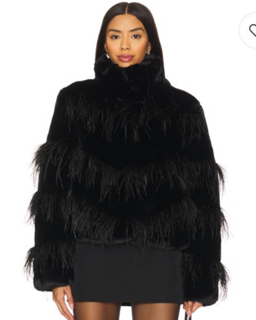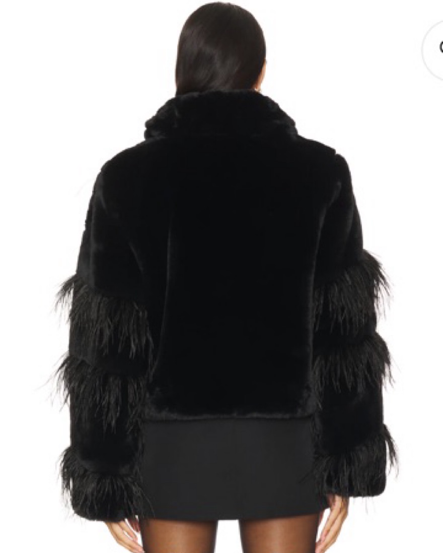 Avah Faux Fur Jacket in Black by designer Milly, purchased from Revolve.