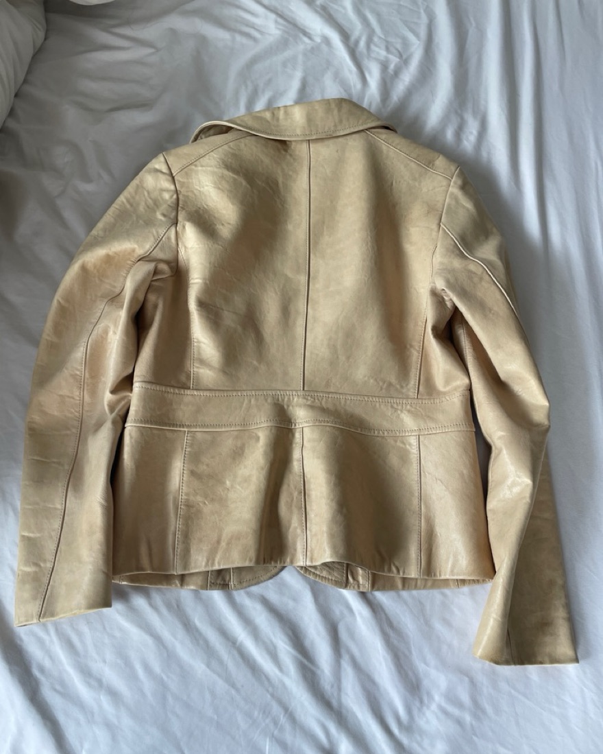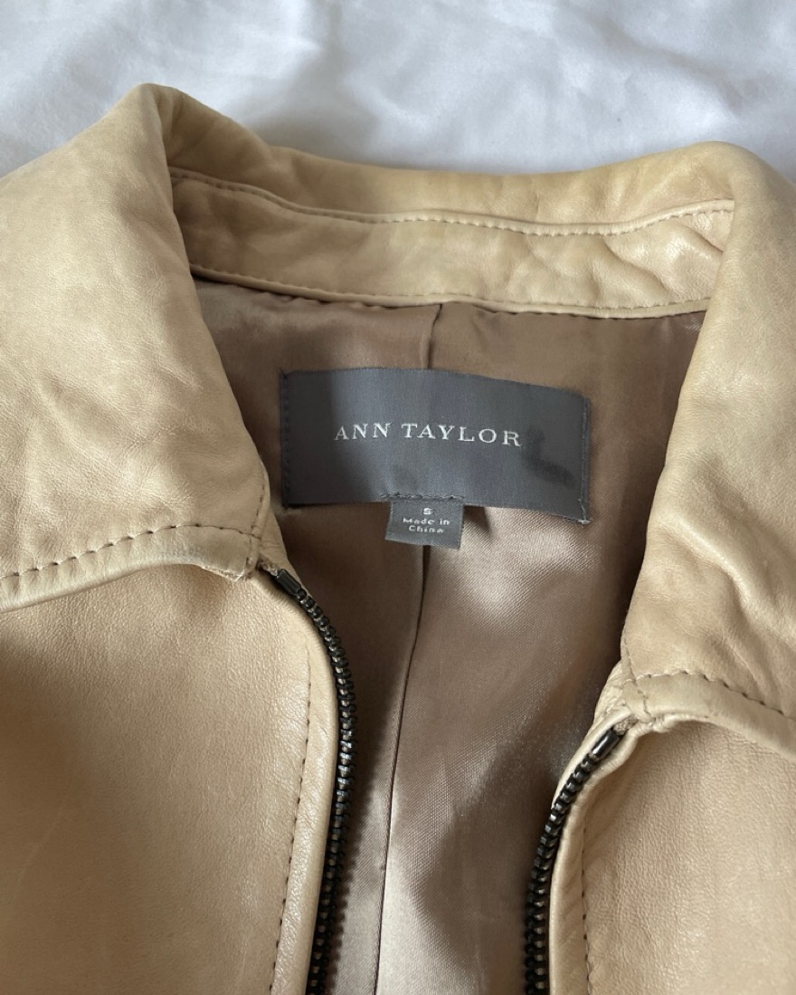 Ann Taylor Tan Leather Jacket by Ann Taylor - Pickle