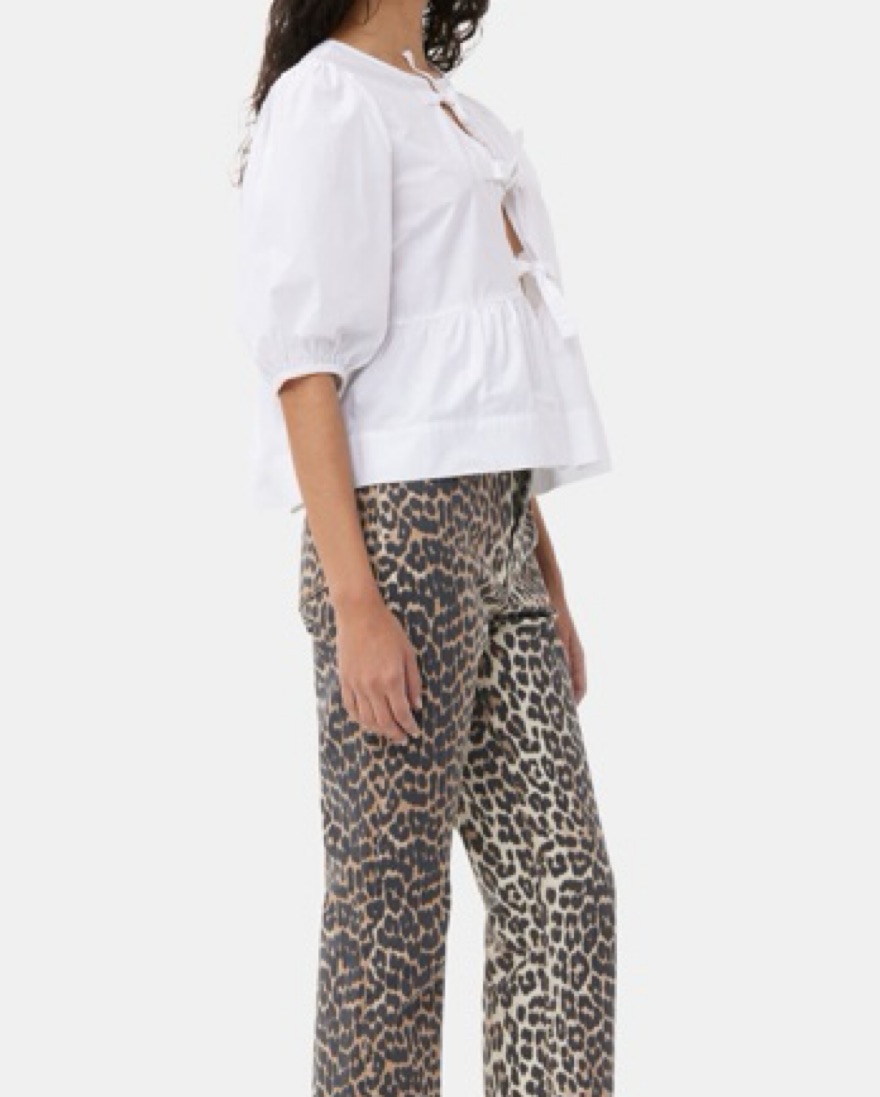 Ganni Cotton Peplum Tie Blouse