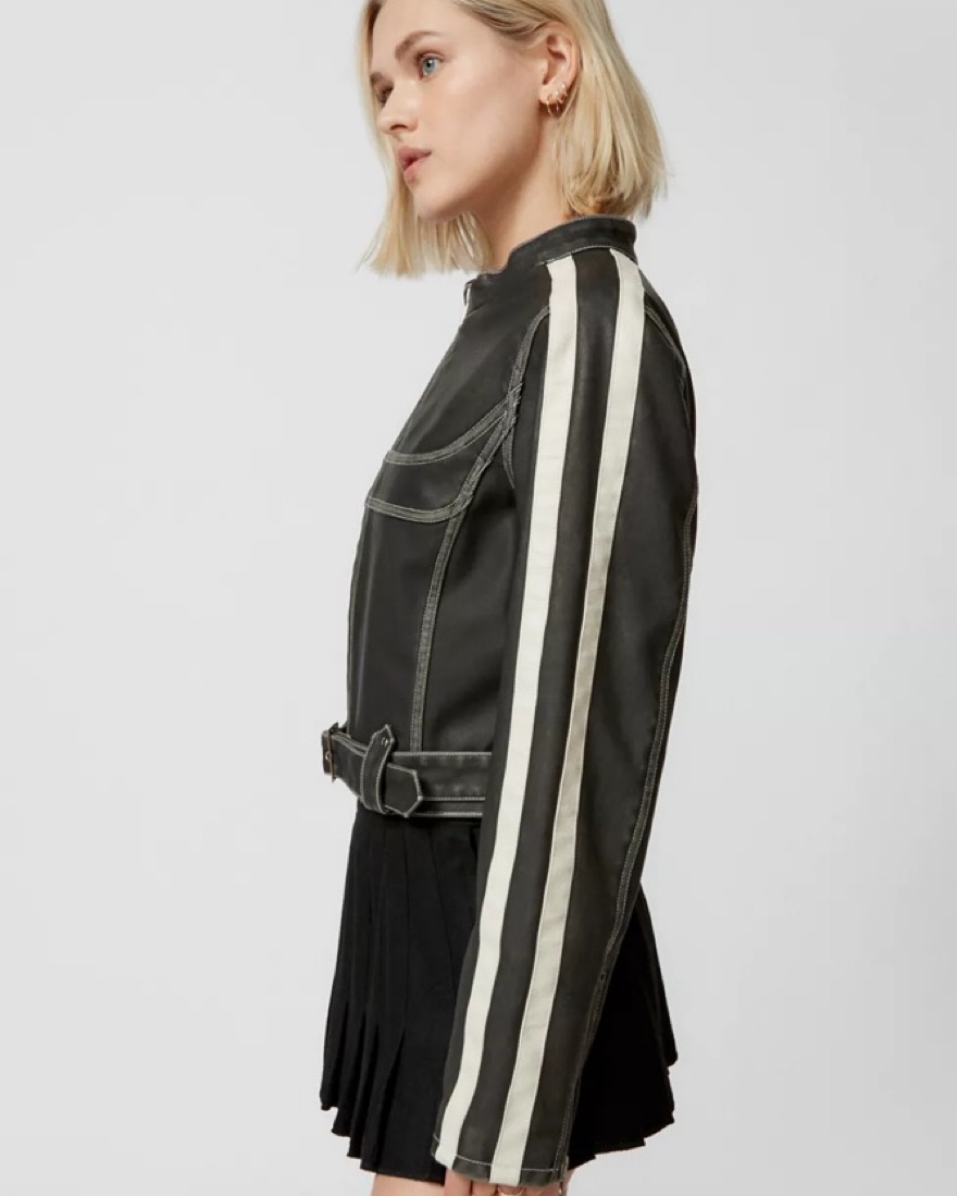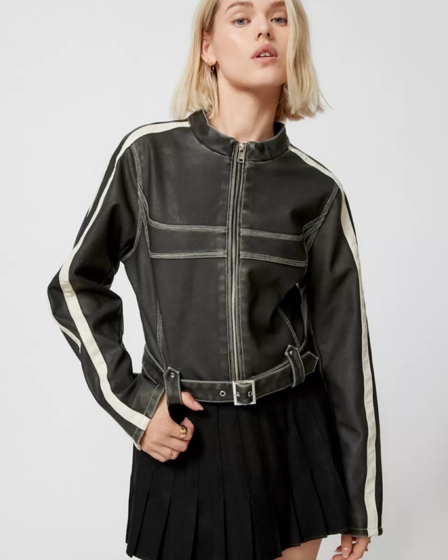 UO Faux Leather Fitted Racer Moto Jacket