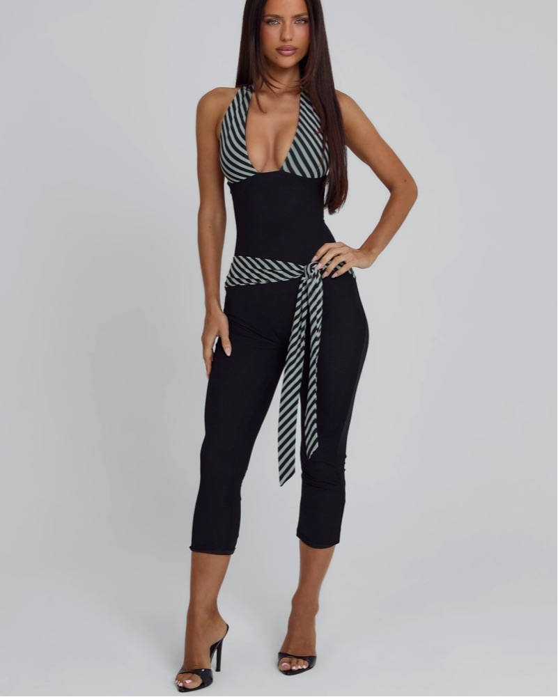 MALANI CAPRI JUMPSUIT BLACK STRIPE