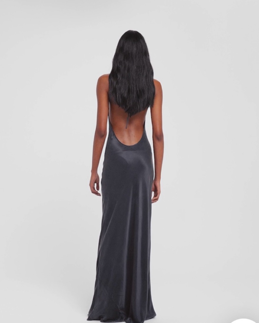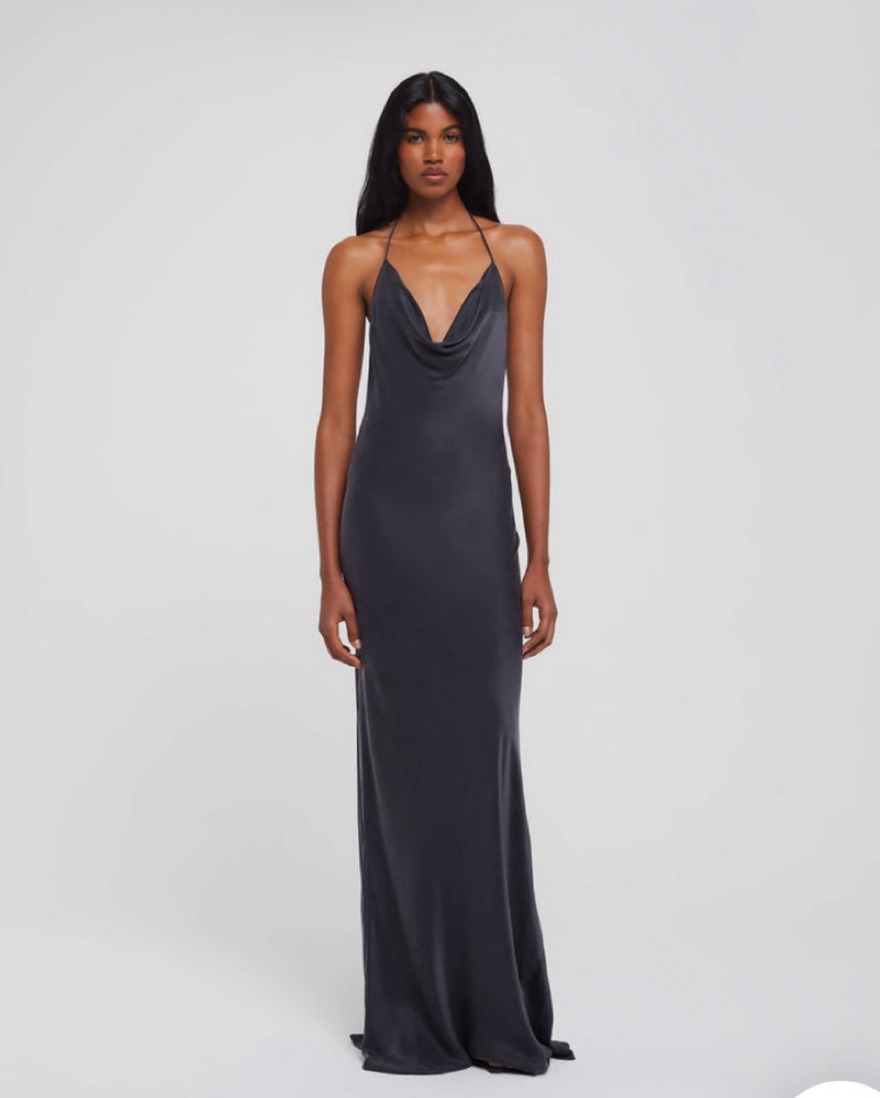 Long dress open back, cowl neckline. Love this for summer. It’s a forever dress. It’s long so def better for taller girls. I’m 5’6 and need 4 inch heels to wear this. Fits sizes XXS/XS. Navy color