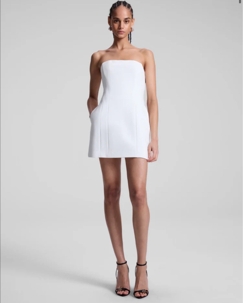The Elsie Dress, a part of A.L.C.'s Signature Collection, is impeccably cut from structured winter white fabric. This mini silhouette is strapless, featuring pockets and darted seams for a feminine fit. Shop Dresses