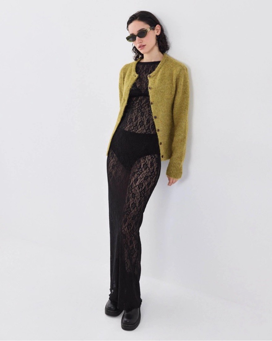 This stunning lace dress exudes effortless elegance. Pair it with the a cardigan or leather jacket for a chic, layered look perfect for a night out or special event.