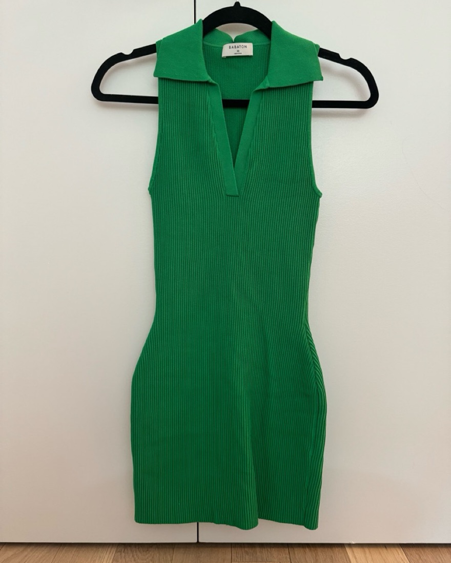 Aritzia Babaron Sculpt Knit Polo Dress. Vibrant kelly green color. Mini dress fit. Size XS