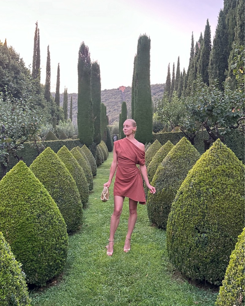 This stunning one-shoulder dress is perfect for a formal event or special occasion. The draped design and asymmetric neckline create a chic, sophisticated look.