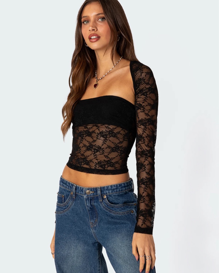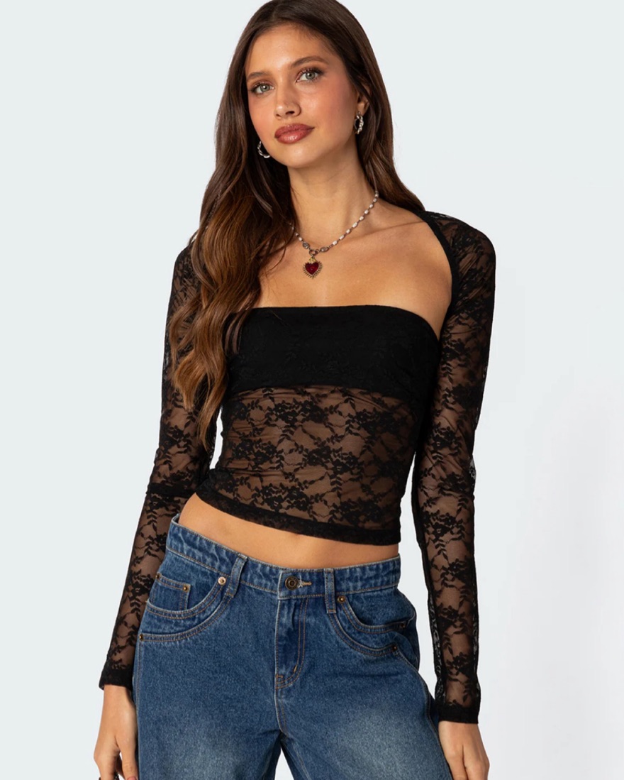 Edikted Addison Sheer Lace Two Piece Top by Edikted - Pickle