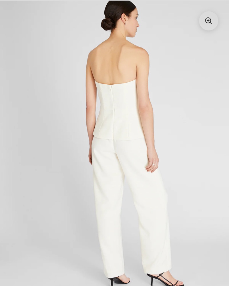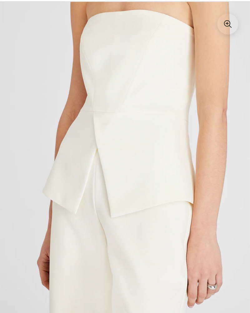 Strapless white jumpsuit. Runs a little big, fits more like an XS but is a 00