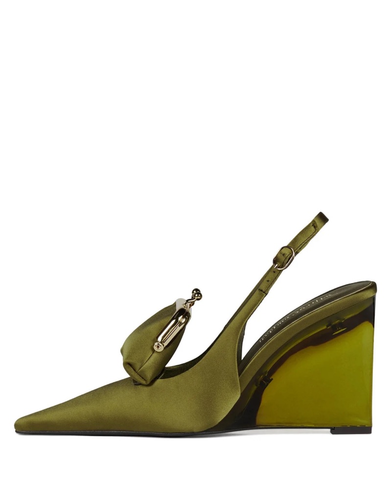 Size 8 in perfect condition. Super comfy as well! These are the type of heels to elevate any look you have! Satin upper