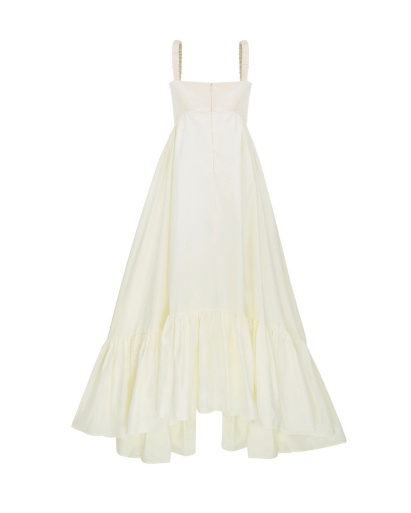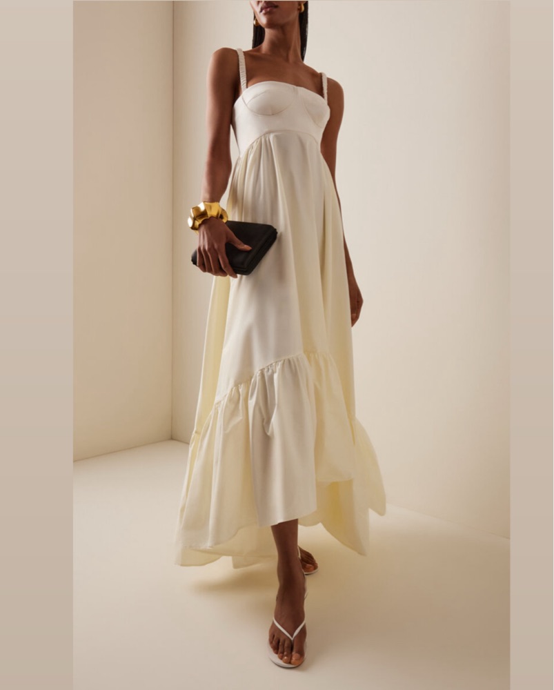 This ethereal maxi dress is perfect for a warm-weather event or wedding. The flowing silhouette and romantic ruffles create a dreamy, elegant look.