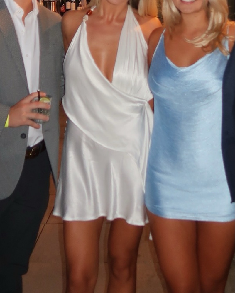 This chic white halter mini dress is perfect for a night out on the town. The flowing fabric and deep neckline create a flattering and feminine silhouette.
