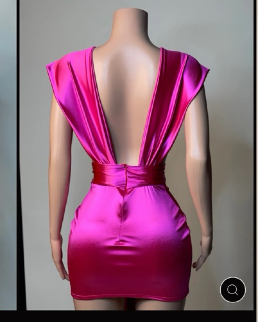 Elevate your style with this vibrant fuchsia mini dress. Perfect for a night out on the town or a special event. Very stretchy! Designed and hand stitched locally by Steph’s Designs in Upper Manhattan