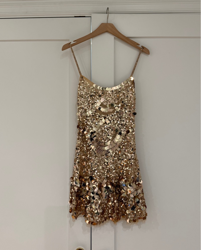 Gold sequin dress perfect for a birthday or holiday season - worn once! Fits like a small. Dress is very delicate so please wear with care! Few sequins missing throughout the dress.