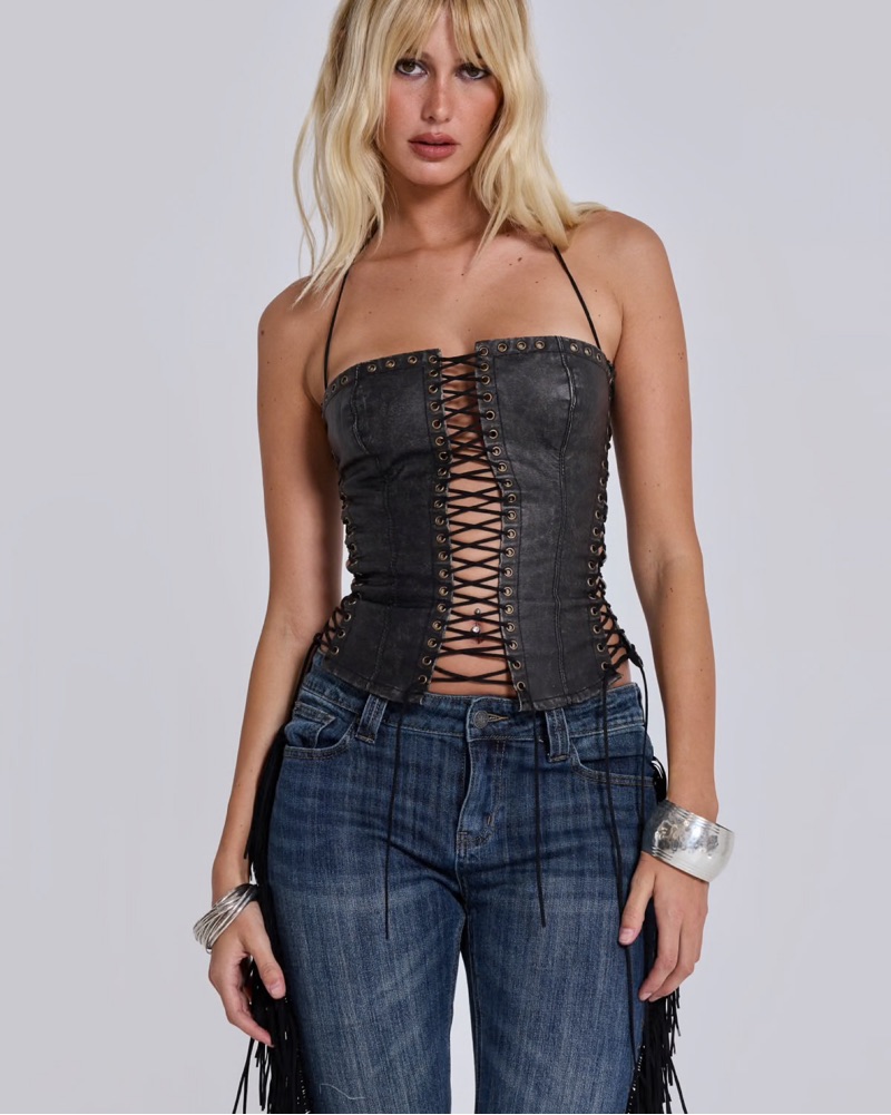 JADED London Leather Lace Up Corset Top